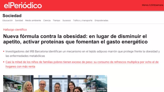 ¿Es posible tratar la obesidad sin necesidad de reducir la ingesta alimentaria? Un estudio co- liderado por el Dr. Antonio Zorzano y la Dra. Manuela Sánchez-Feutrie en el Instituto de Investigación Biomédica (IRB Barcelona) señala que, al menos en modelos animales de estudio, sí sería posible. Publicado en la revista Nature Communications, el trabajo revela que la neuritina 1, una proteína hasta ahora vinculada al sistema nervioso, también se produce en el tejido adiposo marrón. Allí actúa como un potente activador del gasto energético, ayudando a proteger frente a la obesidad y otras enfermedades metabólicas.