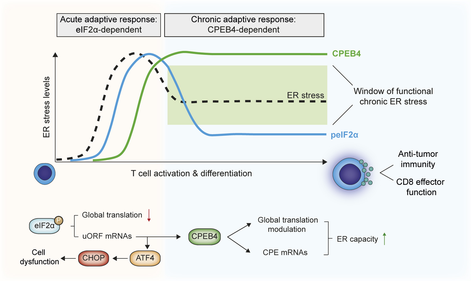 - CPEB4 permite a estas células inmunes adaptarse al estrés crónico generado por la secreción de citoquinas, esencial para que adopten su función efectora y puedan eliminar las células cancerosas.