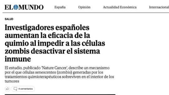 - Una nueva inmunoterapia, en modelos animales, elimina estas células senescentes y mejora la eficacia de la quimioterapia.