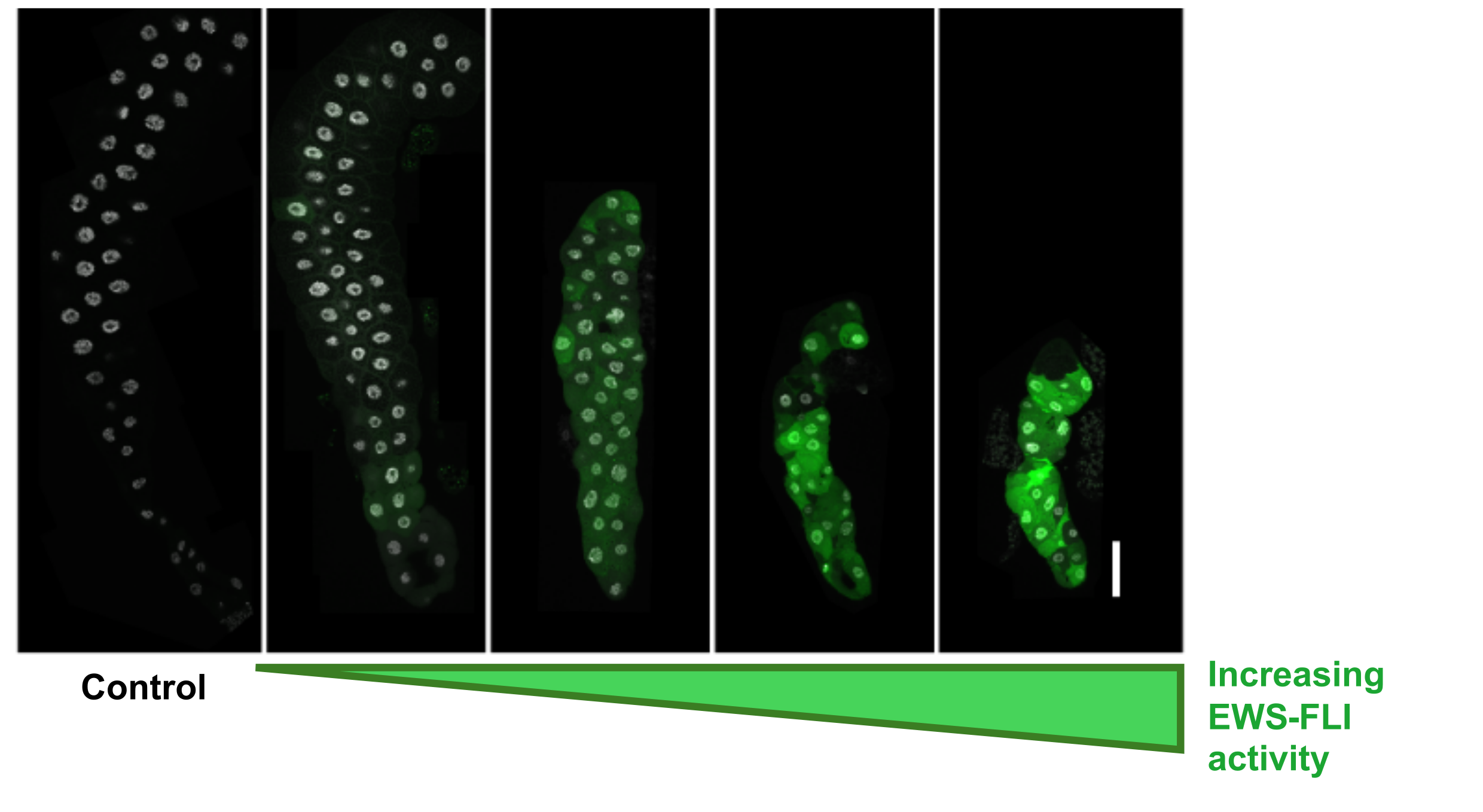 Esta colaboración condujo al descubrimiento de una variante mutante del oncogén humano que evitó el problema de la toxicidad y permitió demostrar que las principales vías oncogénicas desencadenadas por EWS-FLI en células del sarcoma de Ewing humano pueden reproducirse de manera realista en modelos de moscas genéticamente modificadAs (Molnar et al., 2020). Sin embargo, la búsqueda de un modelo de estudio de Drosophila basado en la expresión EWS-FLI no modificada permaneció abierta.