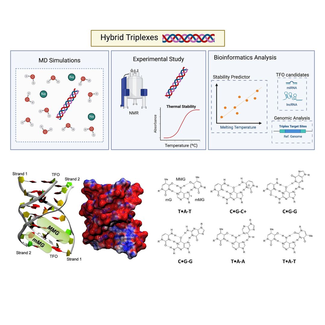 Aunque los tríplex completamente formados por ADN han sido objeto de numerosos estudios, hasta ahora se sabía poco sobre aquellos que combinan ADN y ARN en su estructura —los llamados tríplex híbridos— y sobre su relevancia biológica.