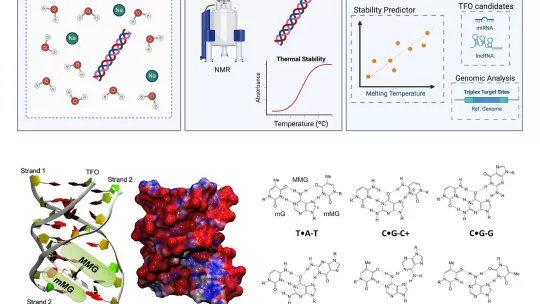 En un trabajo publicado recientemente en la revista Nucleic Acids Research, investigadores e investigadoras, dirigidos por el Dr. Modesto Orozco en el IRB Barcelona donde han colaborado grupos del IQAC y IQFBC (CSIC), la Universidad de Barcelona, Nostrum Biodiscovery y la Universidad de Cambridge, ofrecen un mapa detallado de la estabilidad y la distribución de los tríplex híbridos. Para llevar a cabo su investigación, el equipo se ha apoyado en experimentos biofísicos, simulaciones de dinámica molecular y análisis bioinformáticos a gran escala.