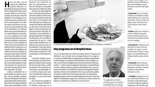 El diario chileno Austral Valdivia escribe un artículo sobre Joan J. Guinovart aprovechando su participación en una serie de conferencias en el país. El texto habla sobre el problema sanitario de la diabetes y la necesidad de educar sobre esta enfermedad y los buenos hábitos para prevenirla.