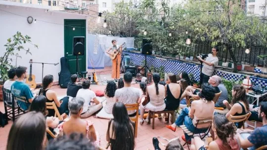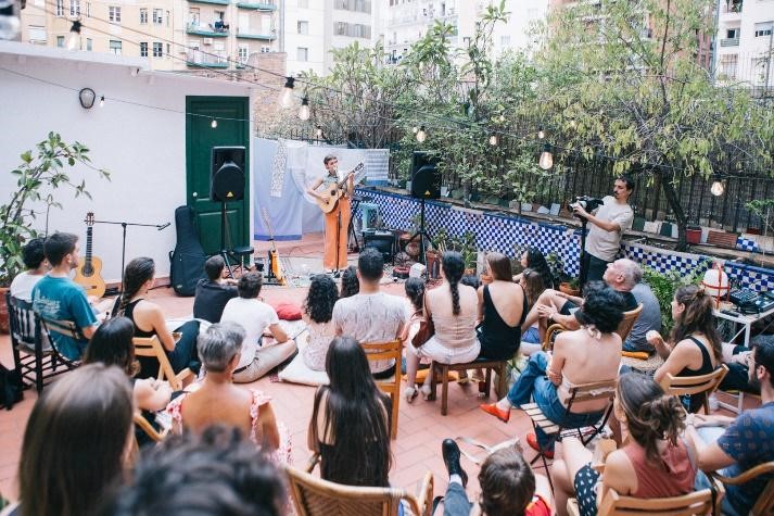 Acabamos haciendo 8 días de conciertos en el patio de casa de mi madre. Fue evolucionando poco a poco. Al principio pensamos que serían dos días a la semana. Lo intentamos montar según nuestra disponibilidad y la de los artistas que quisieran participar. Los conciertos iban a cubrir las 3 semanas que duraba la radioterapia.