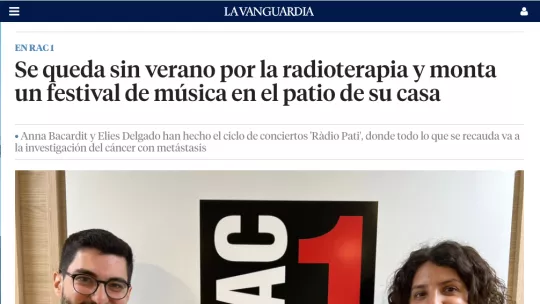 El pasado mes de octubre entrevistamos a Anna Bacardit (1993), la joven protagonista de RADIO PATI, una iniciativa musical destinada a la recaudación de fondos para apoyar el Reto Metástasis. Anna, paciente de cáncer de mama con metástasis, es una mujer vibrante e inspiradora. En esta entrevista nos cuenta cómo nació la idea y comparte con nosotros su experiencia de forma abierta, sincera y natural.