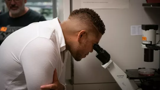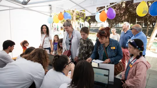 A las 8:30 horas, la calle Baldiri Reixac estaba rebosante de personal del IRB Barcelona y de personas voluntarias. Mientras se desplegaban las carpas para las actividades, se construyó el escenario, se colocaron las sillas y se instalaron camiones de comida que ofrecían hamburguesas, crepes y helados. Mientras tanto, los y las estudiantes de doctorado, postdocs y otras personas del colectivo investigador organizaban una gran variedad de actividades en la feria científica. El personal voluntario, que contaba con los llamados “crazies” (estudiantes de secundaria que participan en el Programa "Crazy About Biomedicine" de este año) también estuvieron dando apoyo, acompañando al público a los laboratorios y ayudando con la logística general.