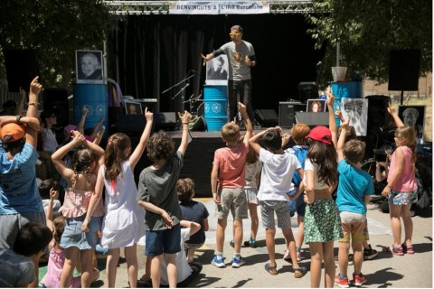 Poco antes del mediodía, subió al escenario Dani Jiménez, un popular presentador infantil de la televisión catalana apasionado por la ciencia. El público fue guiado a través de la historia de la ciencia y entretenido con algunos experimentos espectaculares con efectos divertidos. Los niños estaban totalmente cautivados, con los ojos muy abiertos de asombro.