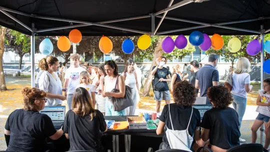 Arriba, una calle un tanto ordinaria se transformó en un centro de actividad. En uno de los extremos, los miembros de nuestra comunidad de doctores impartieron clases magistrales de "Snacks científicos", una actividad que consiste en breves presentaciones sobre temas como la IA en biomedicina y el desciframiento del código del cáncer. Las numerosas preguntas que el público formuló después indicaron un gran interés por los temas presentados.