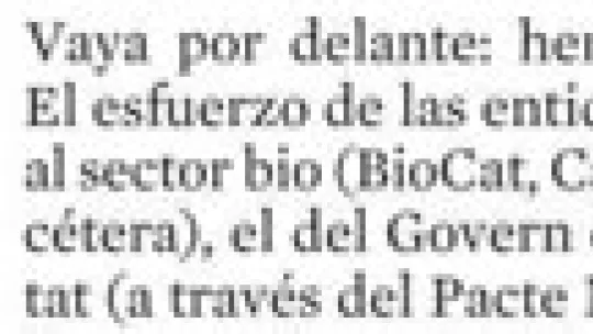 Lluis Ribas de Pouplana, Jefe de Grupo del Laboratorio de traducción genética del IRB Barcelona, ha publicado un artículo de opinión en La Vanguardia sobre el estado del sector biotecnológico en Cataluña. Afirma que aunque se ha mejorado, la situación está lejos de ser la idónea y critica las vaguedades que a menudo se dicen acerca del mundo de la investigación.
