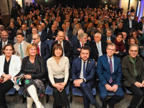 Más tarde, se tomó una fotografía mientras sostenían las letras de “Bienestar Planetario”. Esta fotografía muestra la transversalidad del proyecto y el compromiso de todas las instituciones con este proyecto estratégico para el sistema de investigación catalán.