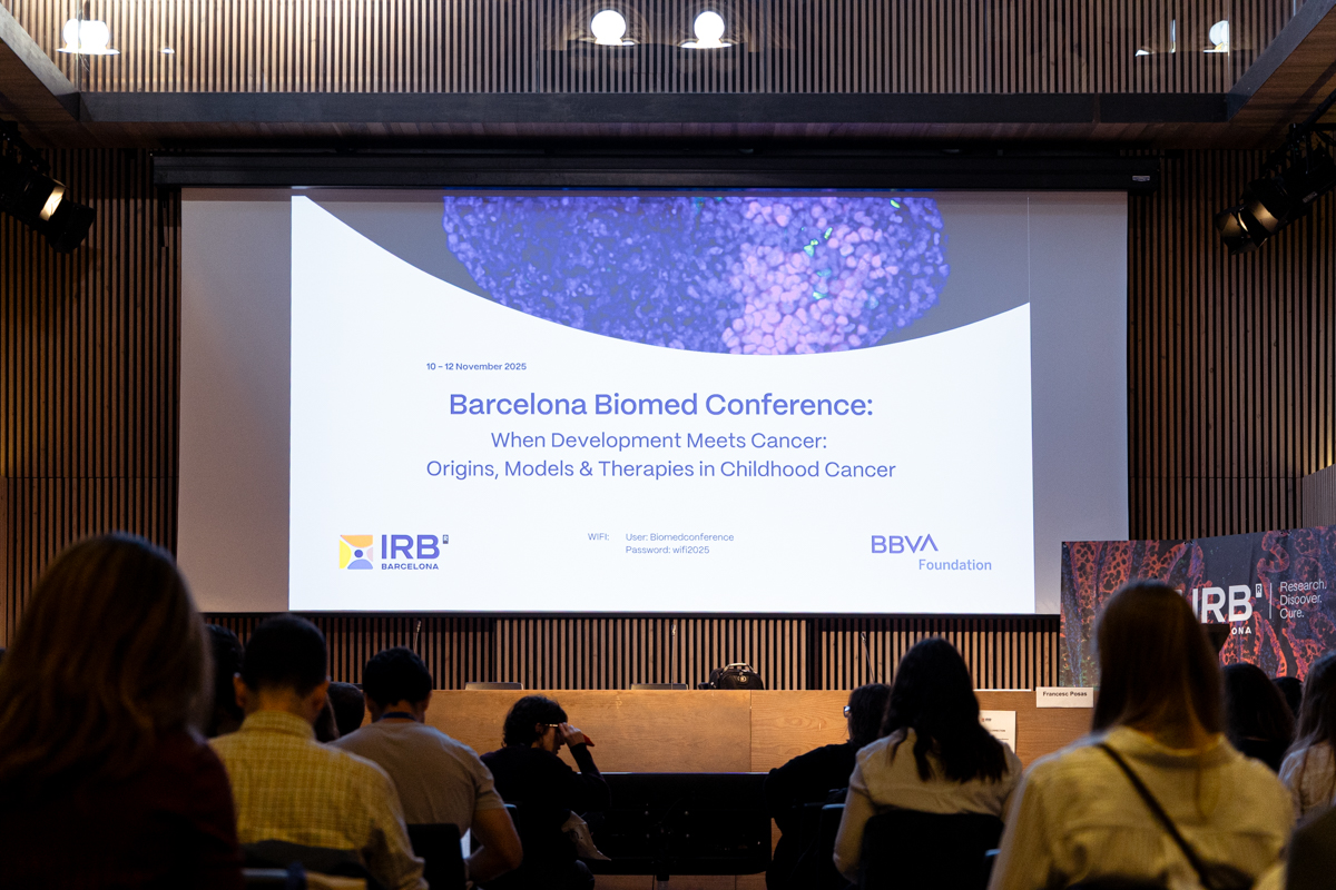 Organizada por la Dra. Alexandra Avgustinova y el Dr. Cayetano González, investigadores del IRB Barcelona, junto con el Dr. Jaume Mora del Pediatric Cancer Center Barcelona (Hospital Sant Joan de Déu), la conferencia contó con la colaboración de la Fundación BBVA, socio histórico en el impulso de la investigación biomédica de alto impacto.