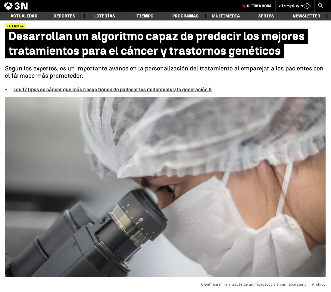 A3Noticias - Desarrollan un algoritmo capaz de predecir los mejores tratamientos para el cáncer y trastornos genéticos