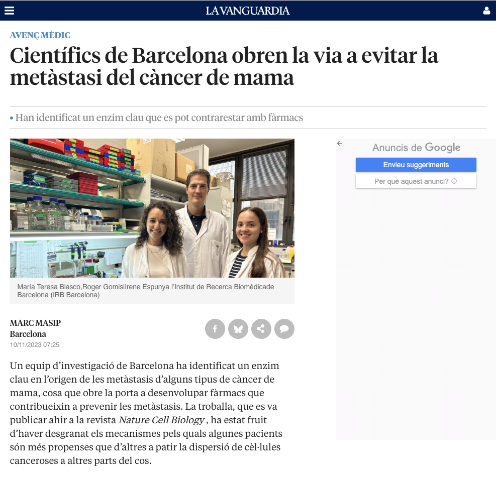 Científicos de Barcelona abren paso al desarrollo de fármacos que eviten la aparición de metástasis del cáncer de mama