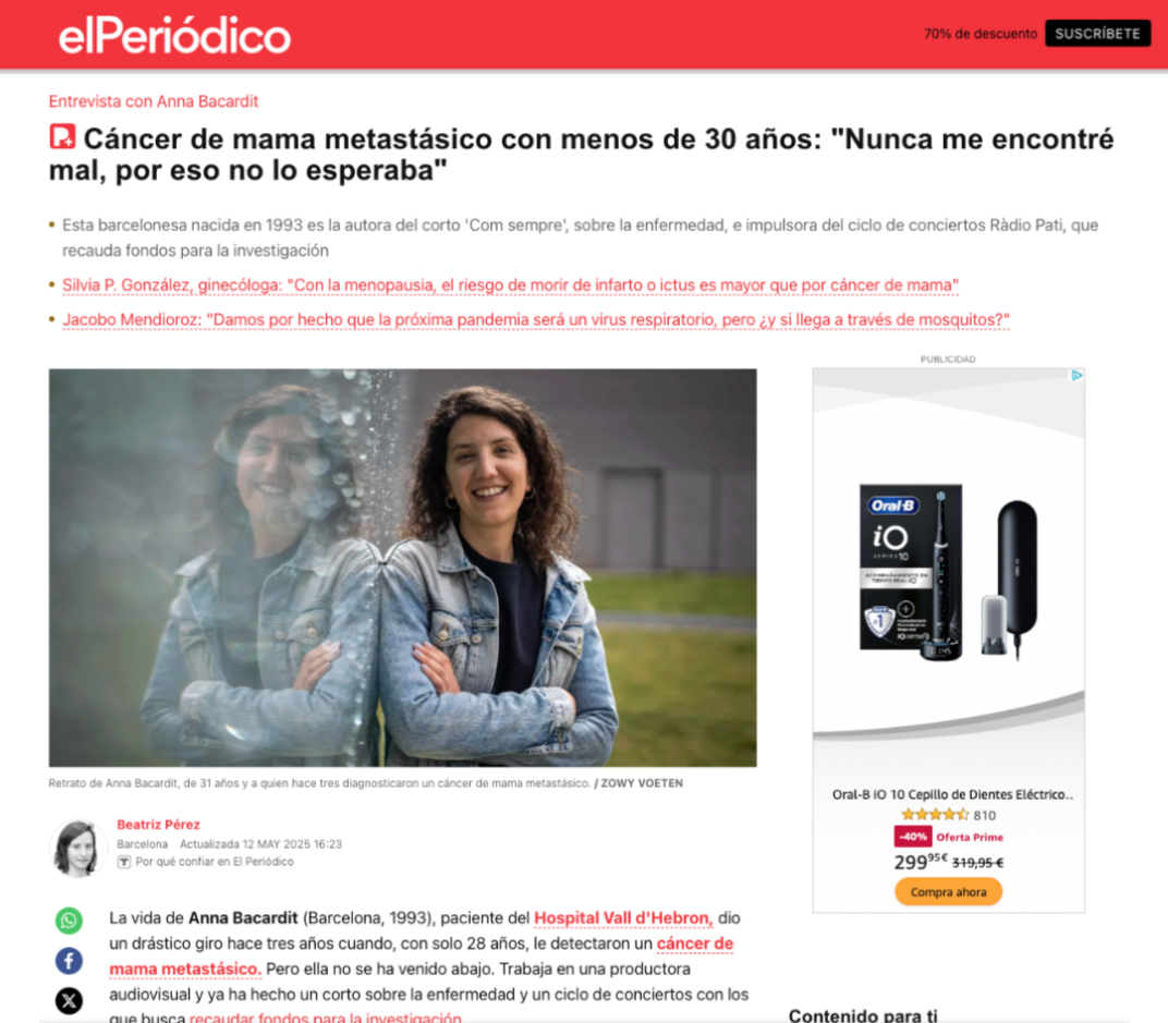 El Periódico - Cáncer de mama metastásico con menos de 30 años: "Nunca me encontré mal, por eso no lo esperaba"
