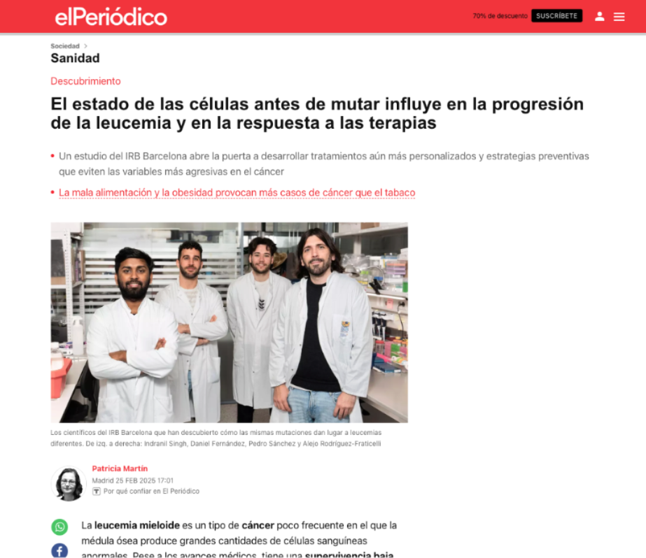 El Periódico - El estado de las células antes de mutar influye en la progresión de la leucemia y en la respuesta a las terapias