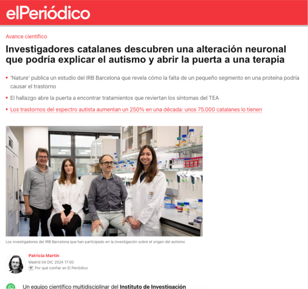 El Periódico - Investigadores catalanes descubren una alteración neuronal que podría explicar el autismo y abrir la puerta a una terapia