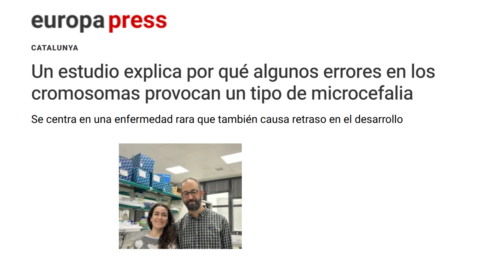 europa press - Un estudio explica por qué algunos errores en los cromosomas provocan un tipo de microcefalia