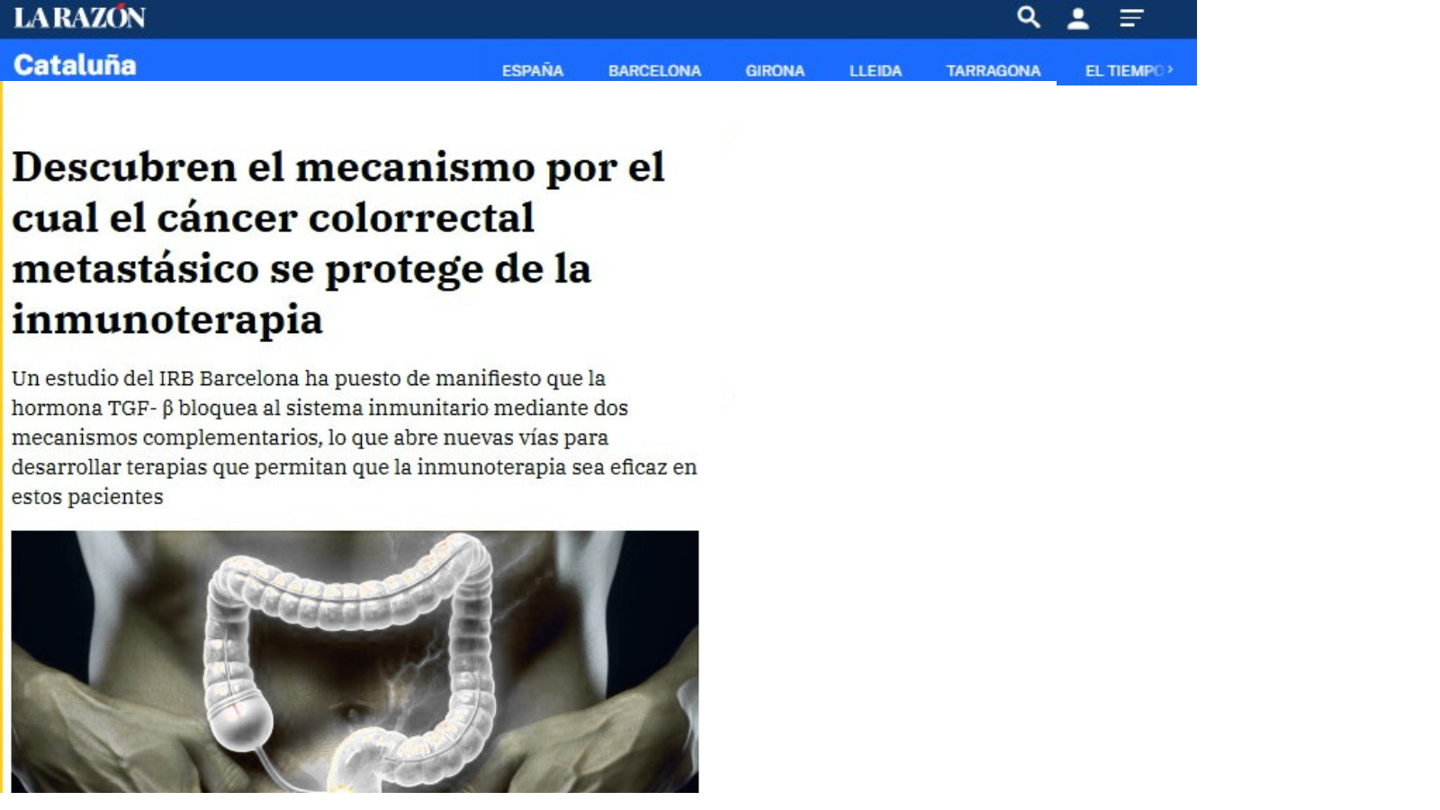 La Razón - Descubren el mecanismo por el cual el cáncer colorrectal metastásico se protege de la inmunoterapia