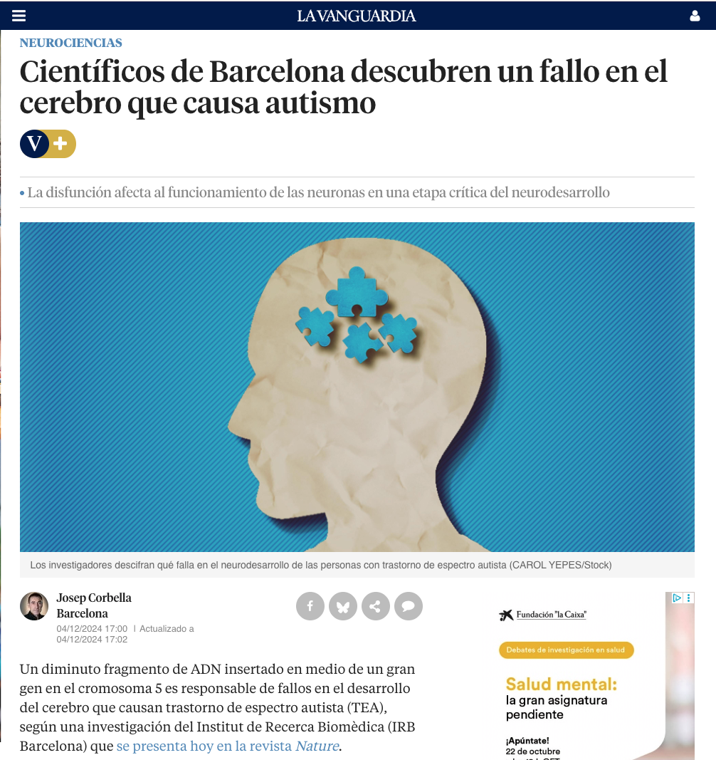 La Vanguardia - Científicos de Barcelona descubren un fallo en el cerebro que causa autismo