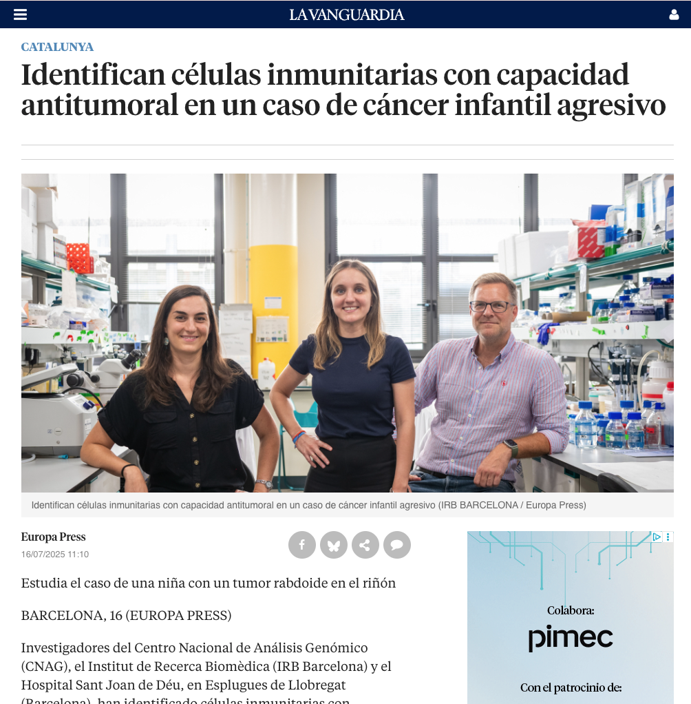 La Vanguardia - Identifican células inmunitarias con capacidad antitumoral en un caso de cáncer infantil agresivo