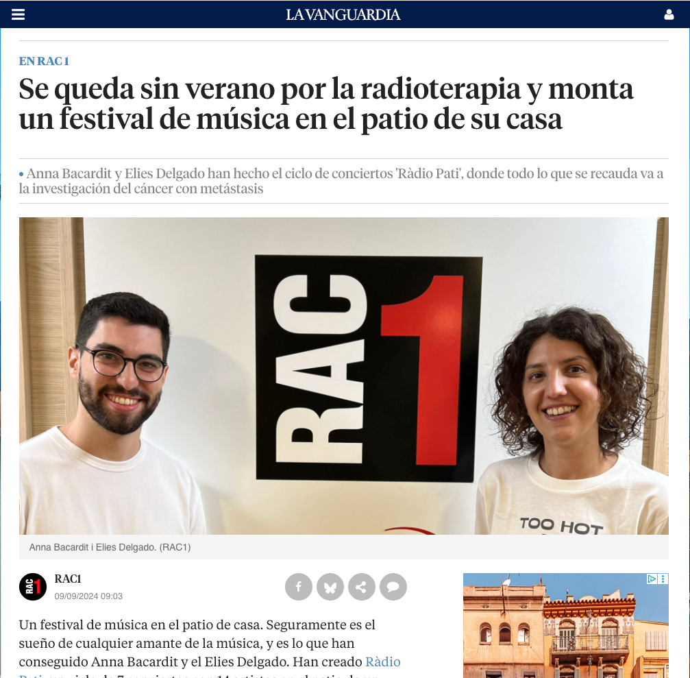 La Vanguardia - Se queda sin verano por la radioterapia y monta un festival de música en el patio de su casa