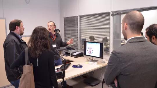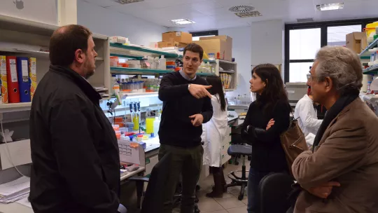 La delegación de Esquerra Republicana ha sido recibida por el director del centro Joan Guinovart y catedrático de la Universidad de Barcelona, y ha visitado el Laboratorio de Metástasis del Cáncer, dirigido por el investigador ICREA Roger Gomis, impulsor de la empresa biotecnológica Inbiomotion, el Laboratorio de Traducción Genética, del investigador ICREA Lluís Ribas, impulsor de la empresa Omnia Molecular, y el Laboratorio de Bioinformática Estructural y Biología de Redes, encabezado por el investigador ICREA Patrick Aloy, premiado con una ERC Consolidator Grant del Consejo Europeo de Investigación este 2014.