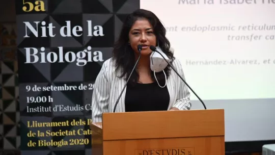 María Isabel Hernández-Álvarez, científica del IRB Barcelona e investigadora Ramón y Cajal del Departamento de Bioquímica y Biomedicina Molecular de la Facultad de Biología de la UB, ha ganado el Premio SCB a un artículo científico 2020. Este galardón de la Sociedad Catalana de Biología ―una filial del Instituto de Estudios Catalanes― distingue a los autores responsables de la publicación científica indexada por la Web of Science de Thomson Reuters que haya contribuido de modo más significativo al avance en el ámbito de las ciencias biológicas.