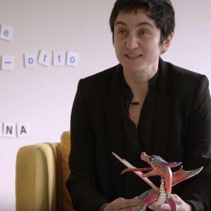 Una característica de los vídeos Meet Our Scientists es el objeto personal que muestran los protagonistas al final de la entrevista. Camille Stephan-Otto viene con un compañero de viaje muy especial, “poderoso, valiente y especialmente creativo, características todas ellas que necesitas para dedicarte a la ciencia y para vivir, diría”.